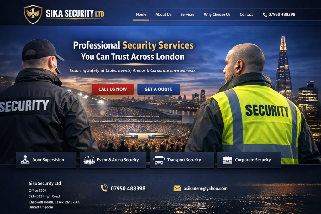 Sika Security Ltd is a London-based professional security company providing reliable, trained, and vigilant security personnel for clubs, events, transport services, arenas, stadiums, and corporate environments.